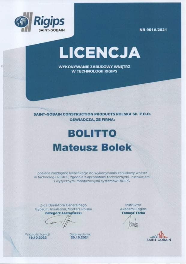 Adaptacje poddaszy przy użyciu najwyższej jakości materiałów wykonujemy na licencji w technologii firmy RIGIPS.